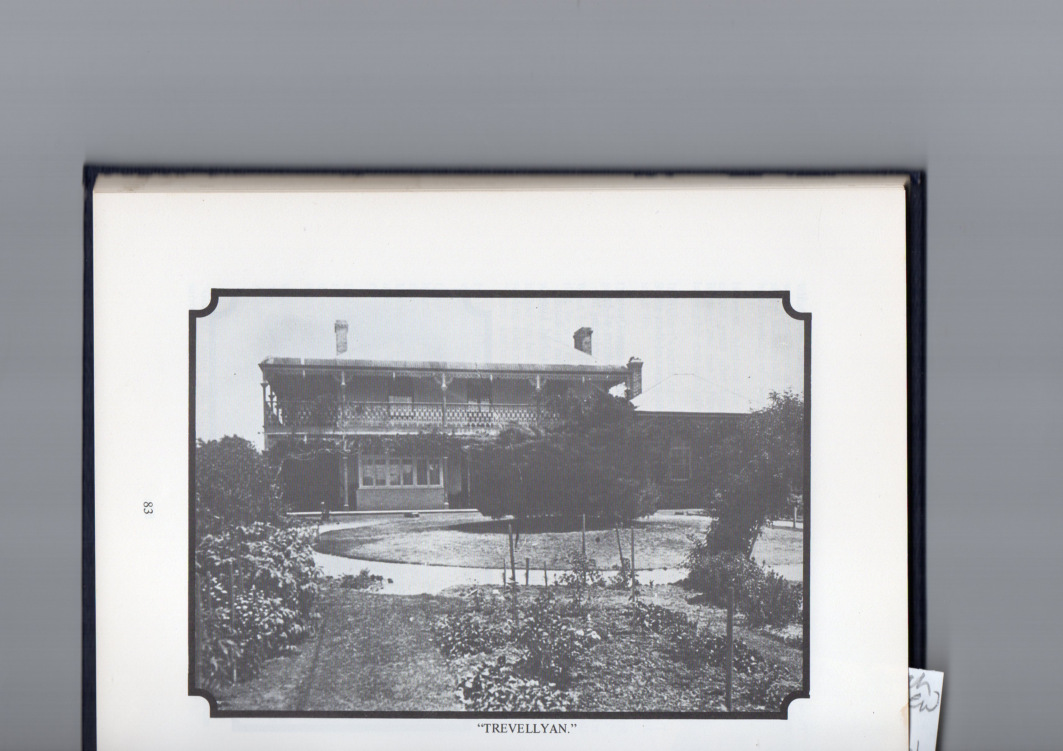 John’s son, Claude and his family lived at Trevellyan after John’s death in 1920. The pine tree Claude planted the day World War 2 ended still stands. Not so the house. Trevellyan was sold and the house demolished, the iron lace selling for $5000. How sad it is that these beautiful old houses are not restored! The tree lined drive and one small shed is all that remains. Trevellyan was lived in and enjoyed by three generations of Glassons.‘