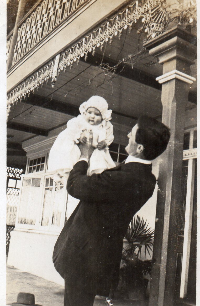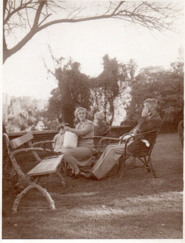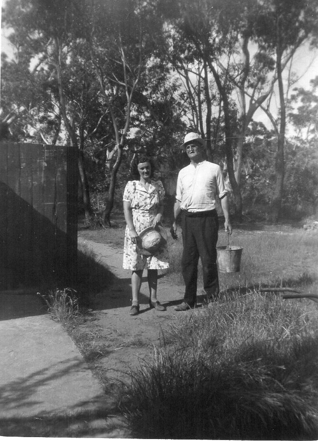 There was a concrete yard along the back of the house, with a long shed parallel to the house. One end was a workshop and the other end was the room of Monty, the painter, who emerged in his overalls from time to time. Our grandfather told us he was the brother of Gladys Moncrieff, the famous Australian soprano. If so, he was the black sheep, living there and smelling of drink, but I think it was one of Char’s jokes. The back area also had a green part where a banana palm grew and produced great bunches of bananas. Our grandmother used to shell peas on the steps near the palm (in the days before convenience foods) and we were told, as our fingers hovered over the peas, that we would contract the Collywobbles. At age 4, I did not know whether to believe her or not, so probably obeyed the injunction to save the peas for lunch.