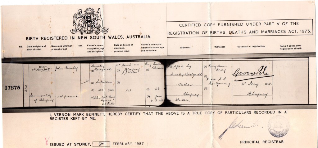 Writing about Dudley whom I knew so well makes me understand the continuity of culture and language which is unconscious in everything we say and do. Dudley was in contact with his English grandfather, William, who was born in 1826, before the Victorian era and died in Glebe in 1899. He also knew his architect grandfather, George Allen Mansfield (d.1908) and the Mansfield and Allen families of Glebe, strong Methodists and early free settlers from Britain. Now, in 2019, 132 years since Dudley was born, I am passing on my thoughts about the past and unconsciously my British heritage to those who read this blog, perhaps my grandchildren!