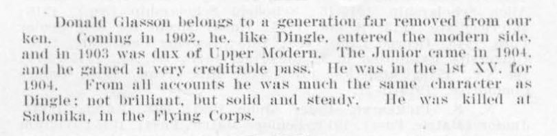 Dudley went to Sydney Grammar School and told me that at age 13 he was his full height of six feet two inches (186cms). When he ran on the field for the 13 year old football match, the crowd booed him, thinking he was too old! He was also a handy sprinter, according to Neil Thornton, coming first in the 1901 under fifteen 220 yard (200 m)handicap race, in a time of 27.15 seconds, from a handicap of 8 yards. This was reported in the Australian Town and Country Journal of 10th August 1901. Perhaps his size helped him here again!