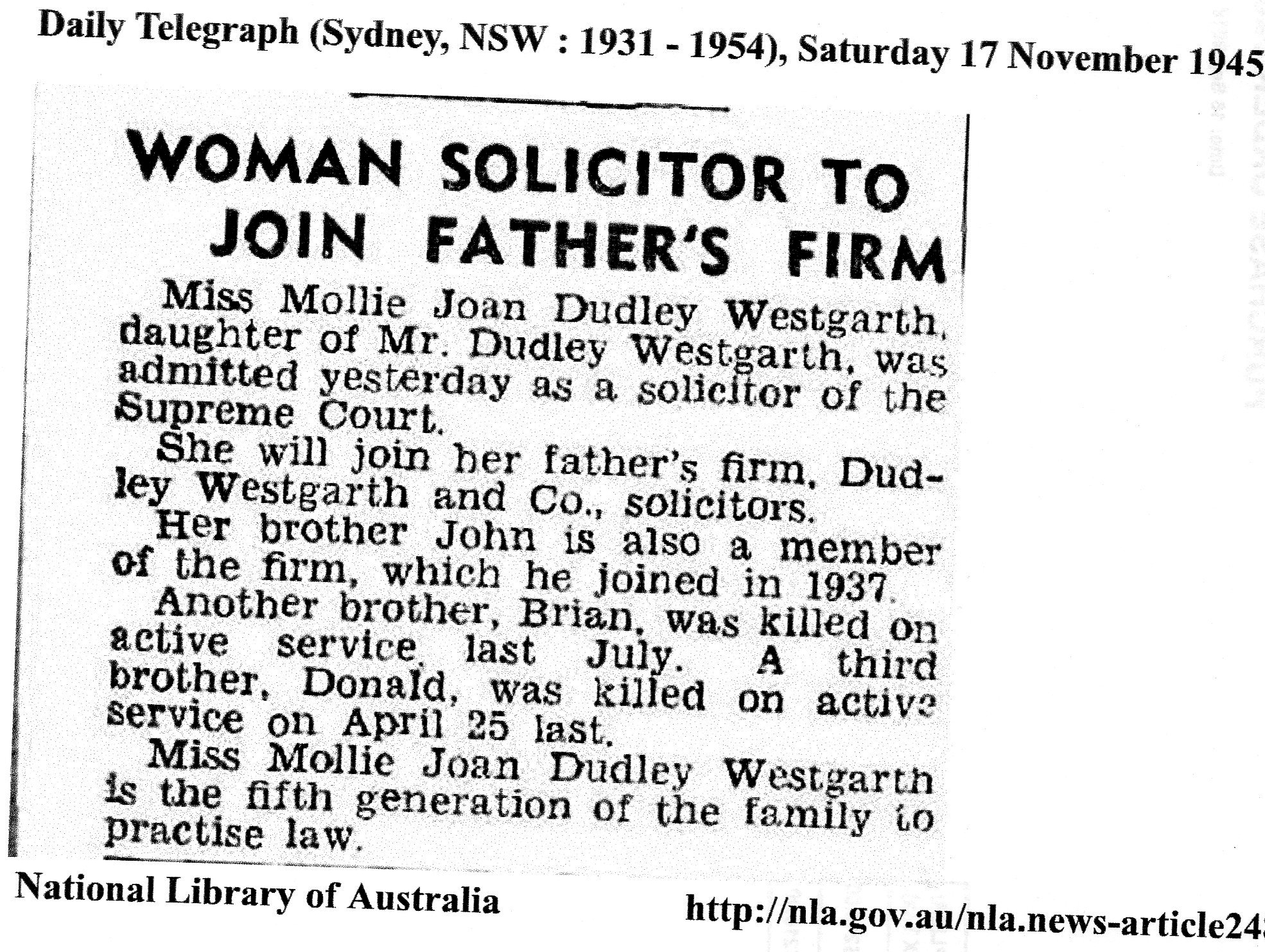 Of course there was a need for Dudley to finish his studies and begin work. He was admitted as a solicitor on Monday, 29th August, 1910, when he was 23 years old and soon after he achieved a country post at Blayney New South Wales, near Bathurst, west of the Blue Mountains. Westgarth, Dudley (60) 27 Aug., 1910 Blayney, Agent: Weaver and Allworth.