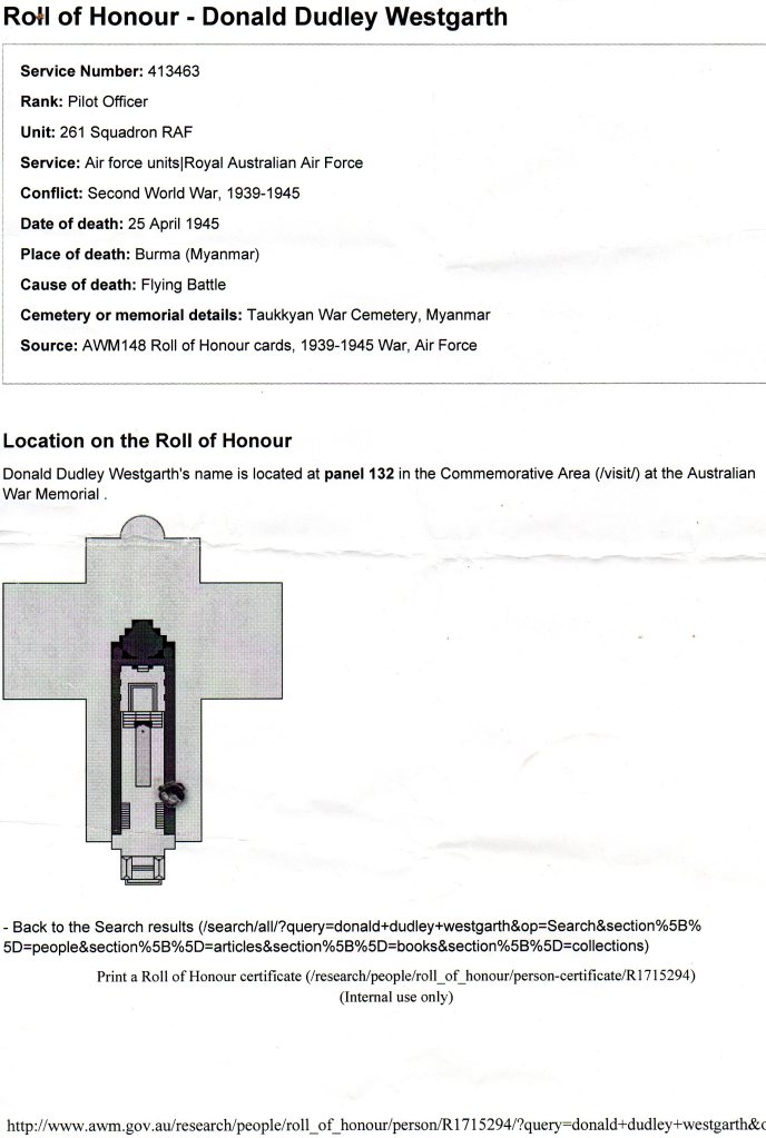 Unlike today in the 21st century, the war dead were not brought home but buried where they fell. Donald was put into a temporary grave and then transferred to the War Cemetery in Rangoon. He is buried at Takkuyan War Cemetery, Rangoon: Plot XXI Row C Grave 19. A bronze plaque was later erected: R 16/23/29.