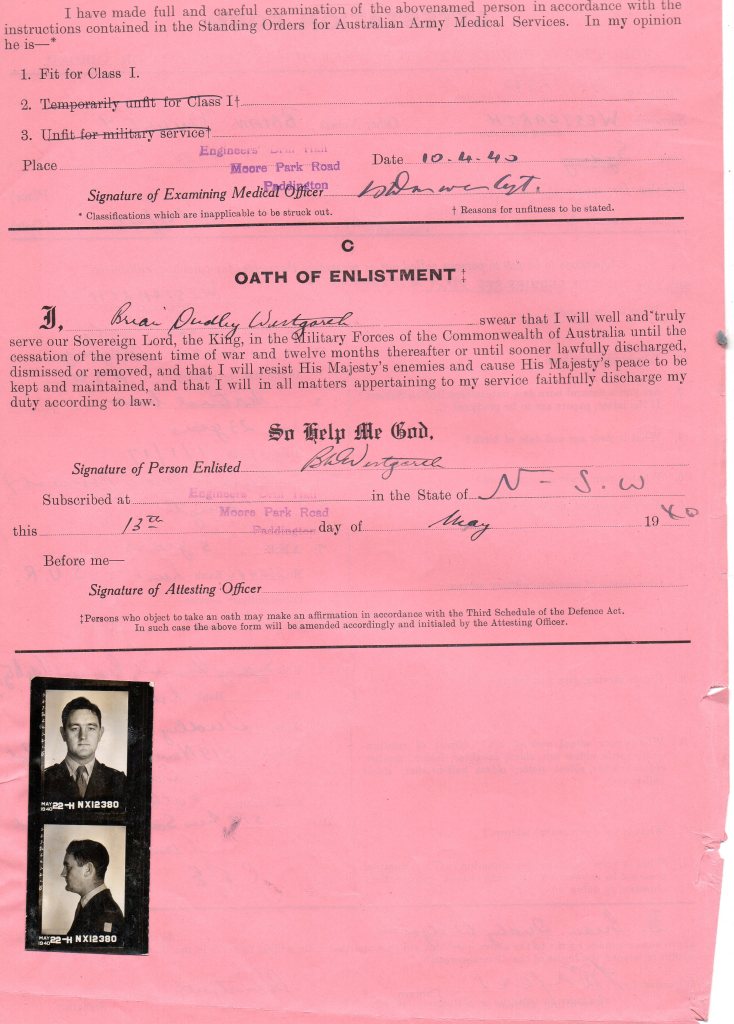 Here is Brian’s enlistment form for 10/4/1940. He already had achieved a Law Degree with Honours and had studied Accountancy. At just 23 he was practising as a Barrister when war broke out on September 3rd 1939.