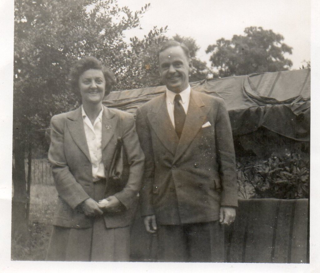 Mollie must have seen a London full of bomb sites and war damage of all sorts. Food of course was scarce and probably not good quality in those post-war days, whilst we were eating well in Australia. Here she is in England, with Doctor Rodney Seaborn, dad’s school friend.