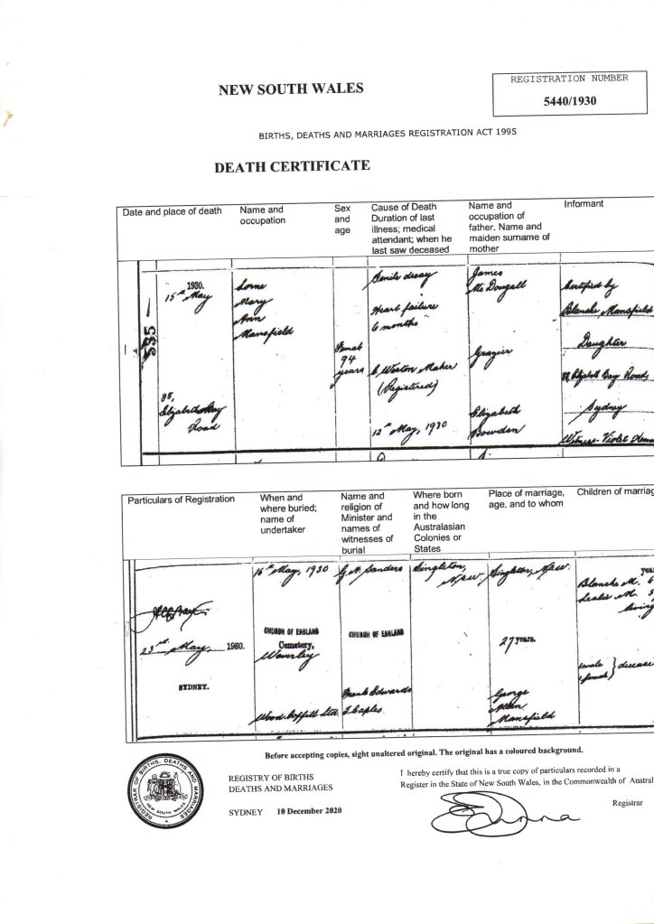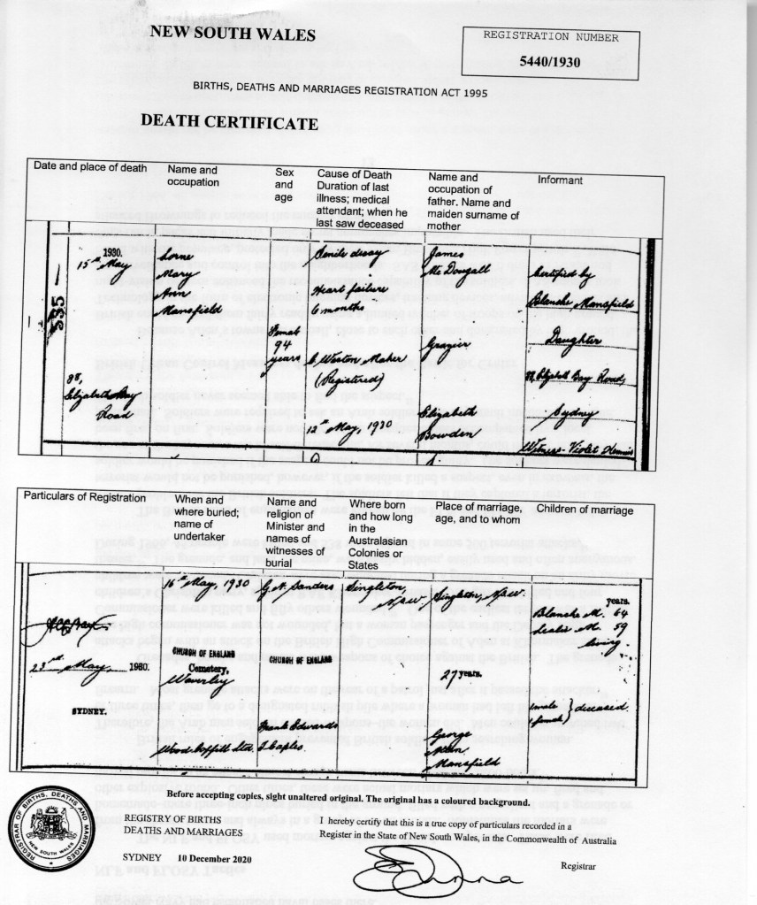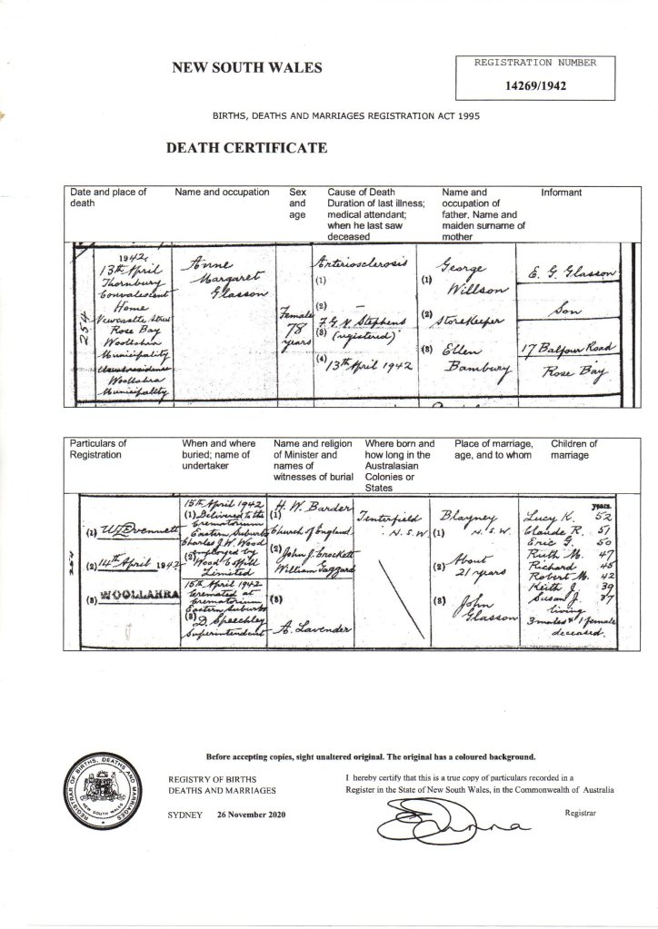 He had emphysema and cancer of the face. He had a a lot of trouble with breathing, so probably that was his end. I could not attend his funeral as I was penniless and pregnant in Canberra, so I only know what is on the death certificate. Trish