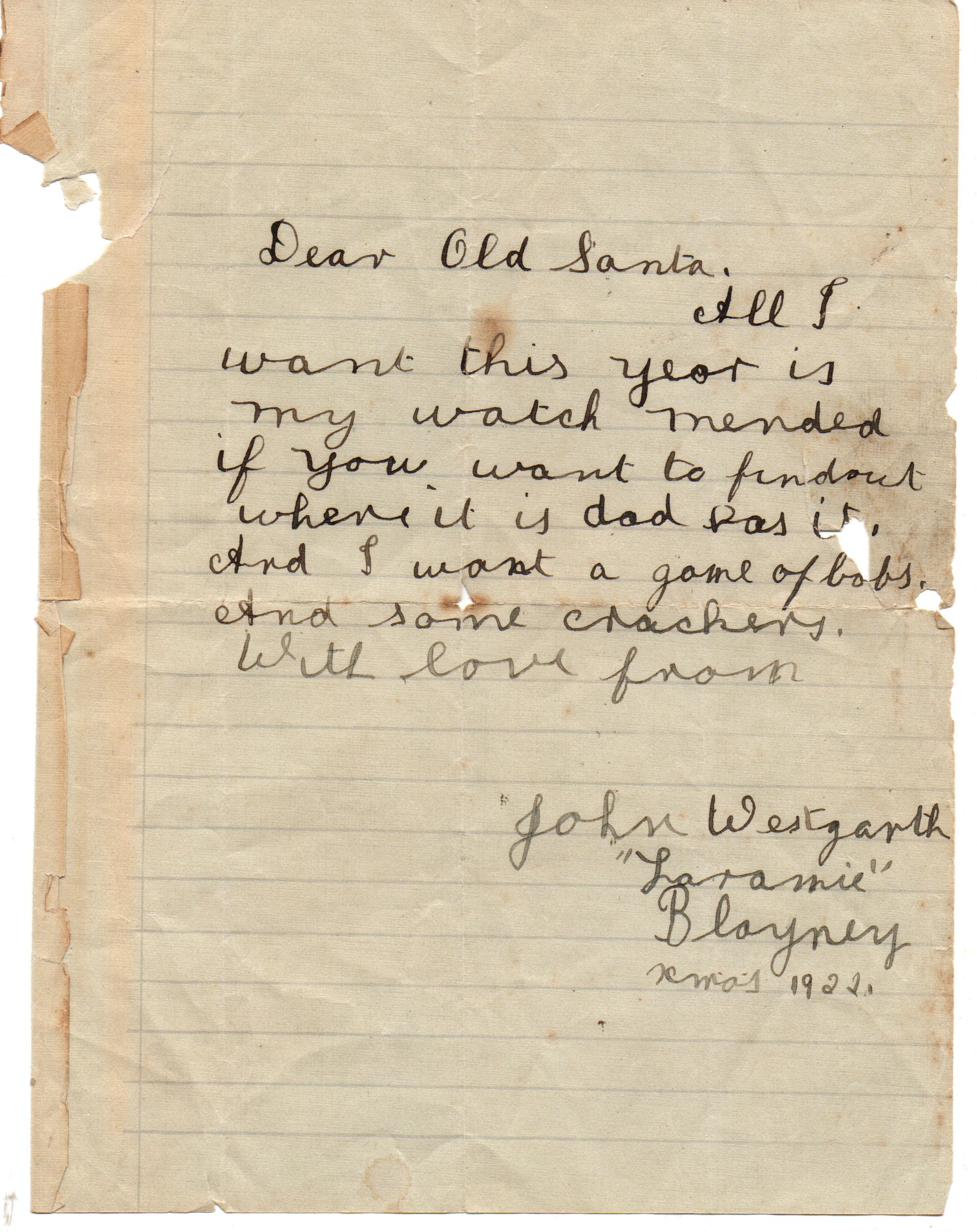 Another difficulty with family history is the tradition of calling the eldest son ‘John’. Dudley’s eldest brother was John, Kathleen’s eldest brother (who died as a baby) was John and my father, the eldest, was called John too. You can see in the Glasson letters how difficult it is to distinguish the generations when they have all been called John!