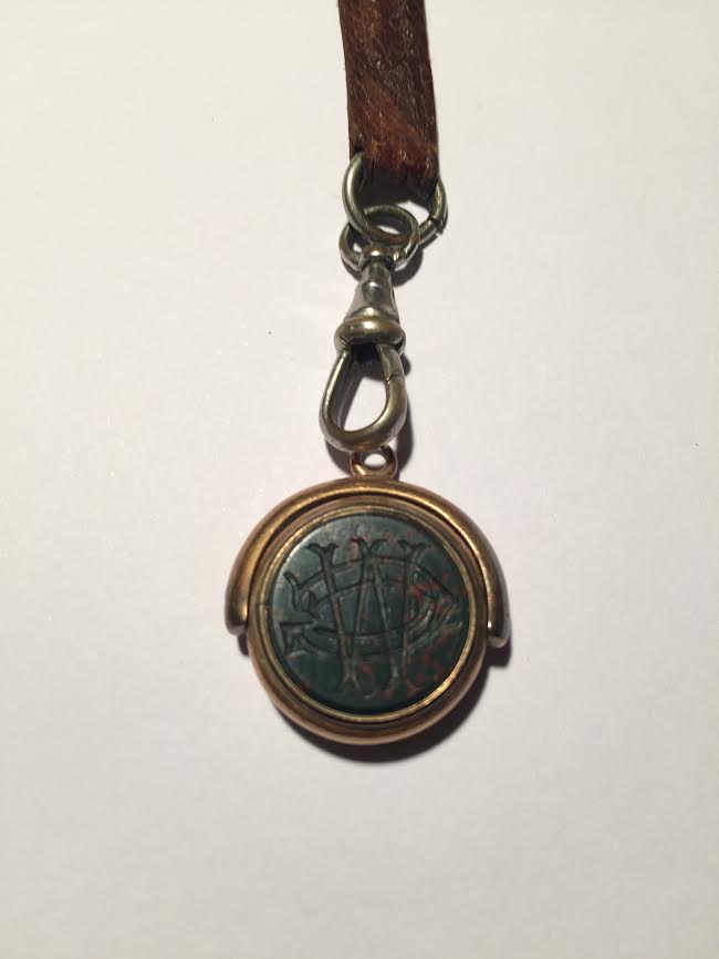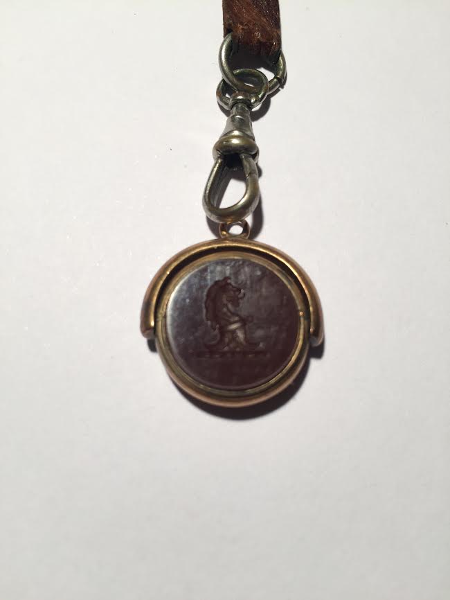 This letter revealed to me the existence of the coat of arms in another form. Just the lion on the top is called a ‘crest’ and George Charles had it engraved on a bloodstone set in gold.
