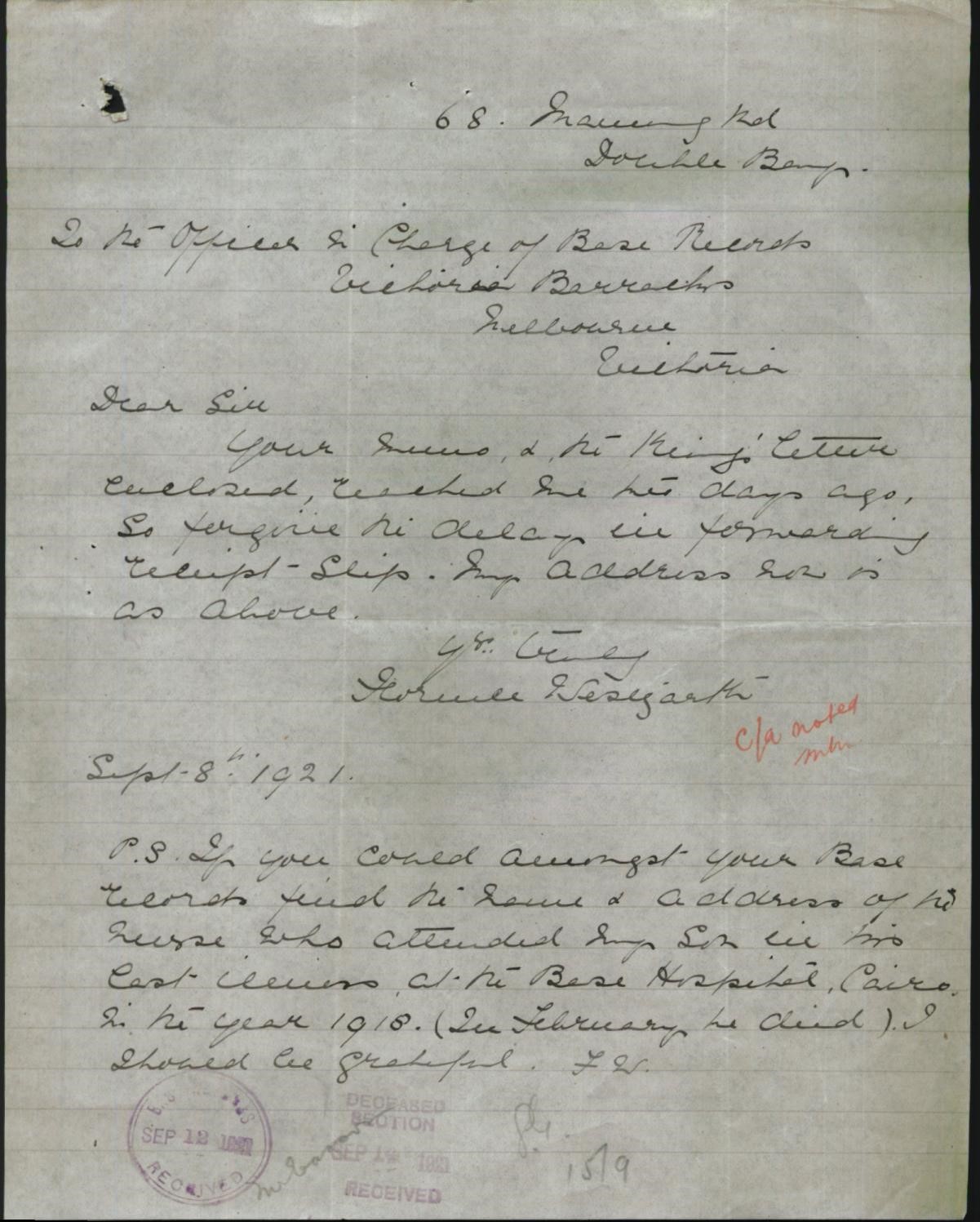 His mother wanted to know more about her son’s death. She wrote the following letter, hoping to have a personal talk to his nurse. The request was rejected, which perhaps was a blessing, considering the terrible death he suffered.