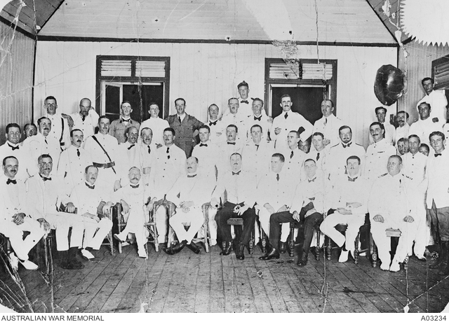 Group Portrait of the Officers’ Mess of the Australian Naval and Military Expeditionary Force. John is ninth from the right, back row, I am guessing!