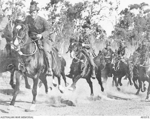 “Australian Mounted Division‘s 4th and 12th Light Horse Regiments (4th Light Horse Brigade) conducted a mounted infantry charge with bayonets in their hands, their only weapon for mounted attack, as their rifles were slung across their backs. Part of the two regiments dismounted to attack entrenchments on Tel es Saba defending Beersheba, while the remainder of the light horsemen continued their charge into the town, capturing the place and part of the garrison as it was withdrawing. https://en.wikipedia.org/wiki/Battle_of_Beersheba_(1917