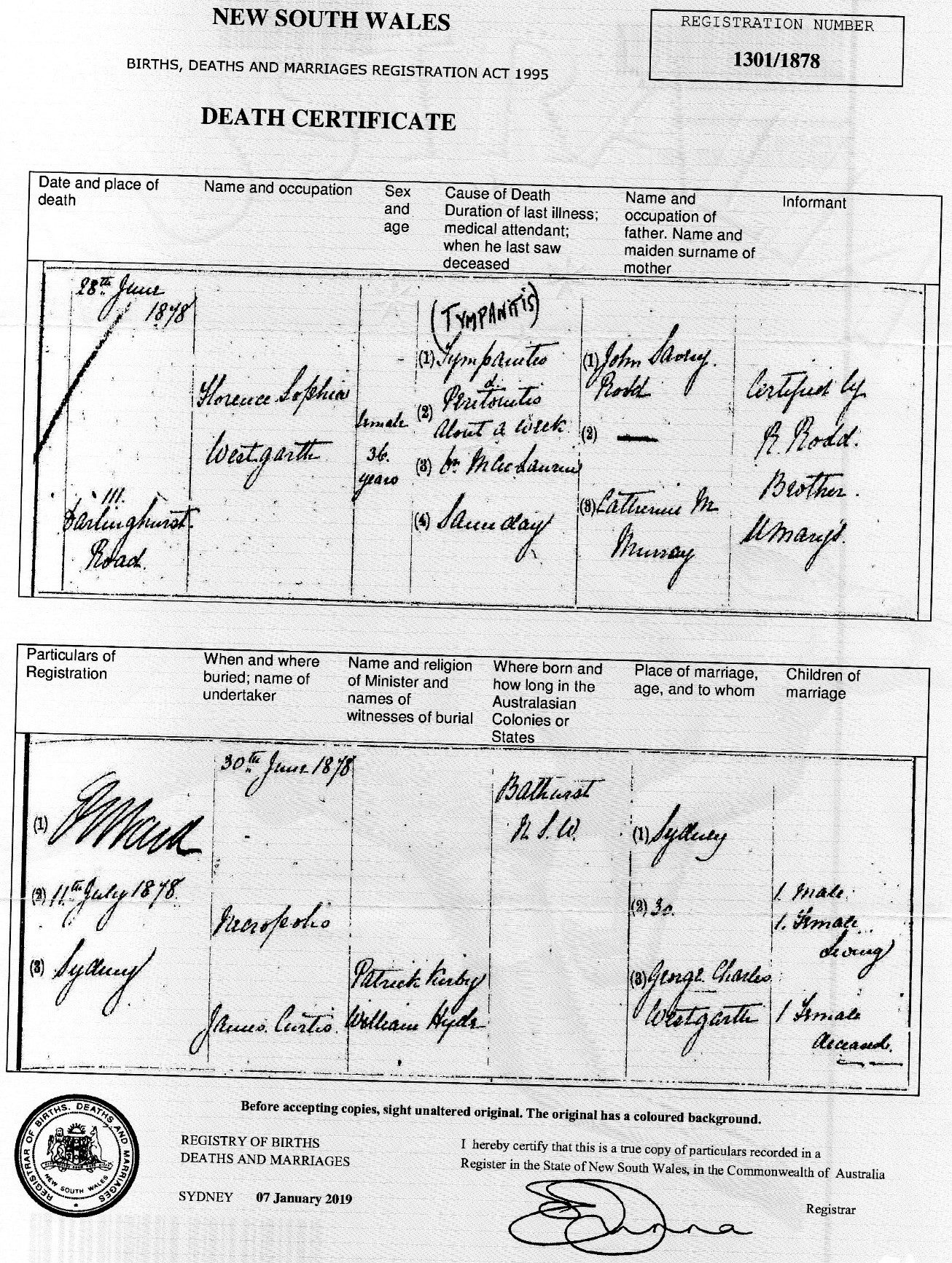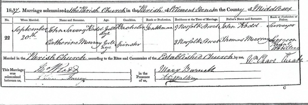- First marriage to Florence Sophia Rodd and information about her parentage