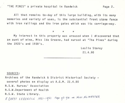 Thanks to the Randwick and District Historical Society for their help in finding this house and the following article. There were two houses of that era called ‘The Pines’ in Randwick!