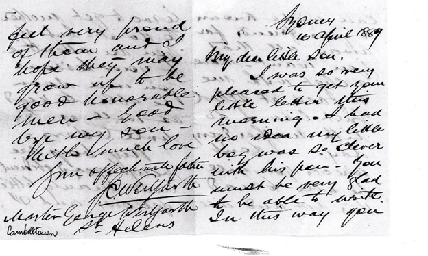 - Letter from George Mansfield aged 8 and his father’s reply.