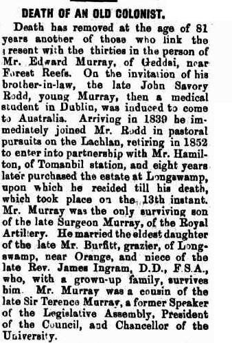On 2nd July 1872, George Charles married Florence Sophia Rodd, who was born at Blackdown, in Bathurst, New South Wales in 1841. Florence came from a wealthy landowning family, but at the time of her marriage, her father was deceased and she was 30 years old.