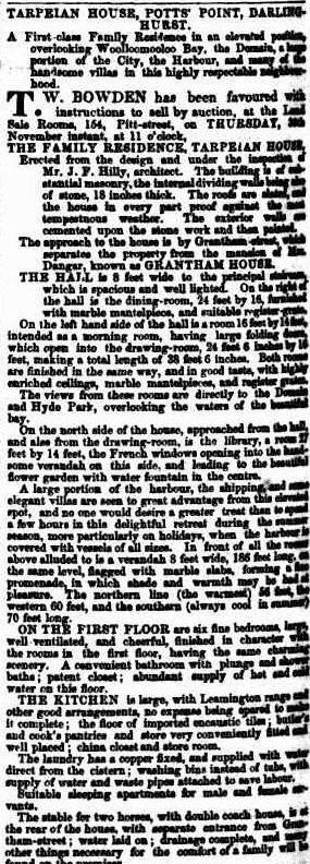 Reading the sale posters for 1985 below, one gets a glimpse of the valuable fittings in the house, such as 7 marble fireplaces, three bathrooms and a separate weatherboard billiard room, as well as stables and other buildings.