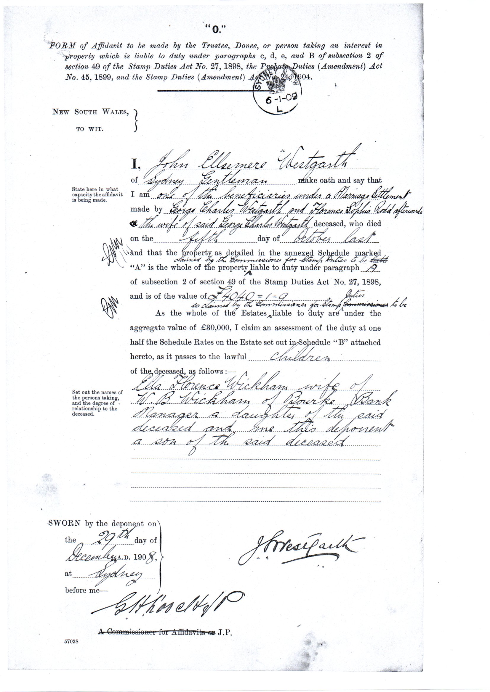The death duty on the £3483.3.11 was one percent, because Jack and Ella signed an affidavit ‘O’ claiming that all the money in the above Annexure A was part of their inheritance.
