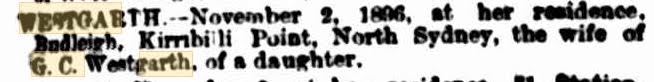 The 1890s were good to George Charles. His career prospered with his partnerships, especially with Alfred Nathan. There were many social occasions as indicated above. The Westgarths were connected by marriage to prominent families. They had many cousins in Sydney: the seven children of Elizabeth Ann, three children of Edith Isabel and four children of Florence Maude. There would have been Rodd and Mansfield cousins as well, living close by in Sydney, or on country estates. Just as Florence Sophia had been financially supported by the Rodds, Lucy Florence was supported by the Allens.