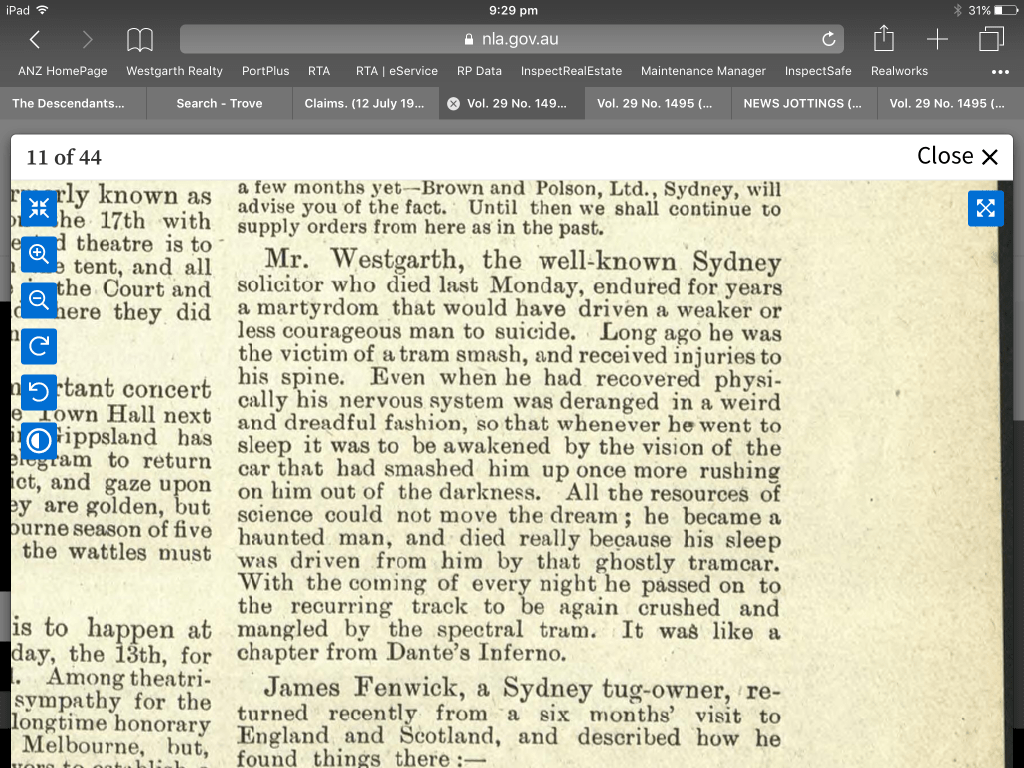 I remember my grandfather telling me about his father’s rash. For a long time I decided I must have made it up, but the evidence is there. Everything he told me has been verified as I work through the years. I think he said George Charles fell running for the train. The Bulletin reports a tram smash.